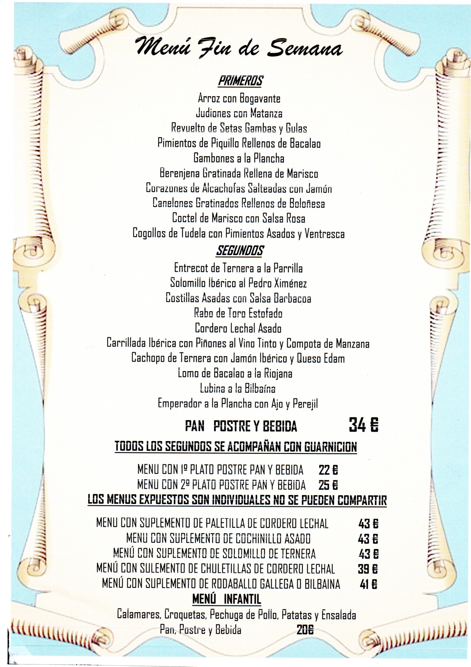 Disponemos Jueves y Viernes de un menú semanal extraordinario, basado en la cocina de mercado